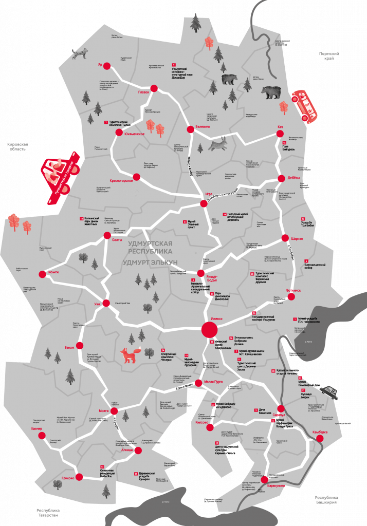 Коренные жители здесь живут в гармонии с природой – поклоняются духам и верят в силу Вселенной. На севере региона расположены мононациональные деревни бесермян. Они и сегодня сохраняют уклад жизни их предков: строят традиционные дома, готовят блюда по старинным рецептам и носят такую же одежду, какую шили их бабушки и дедушки.